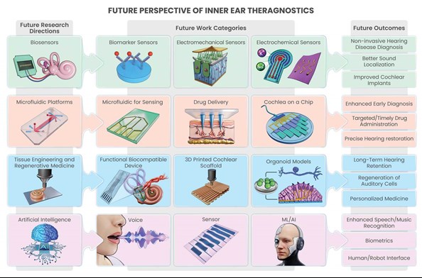 Figure 2: Future perspective of biosensors, microfluidics, drug delivery, regenerative medicine and AI converge to enable personalised inner ear diagnostics and therapy (Licensed under CC BY 4.0) [12].