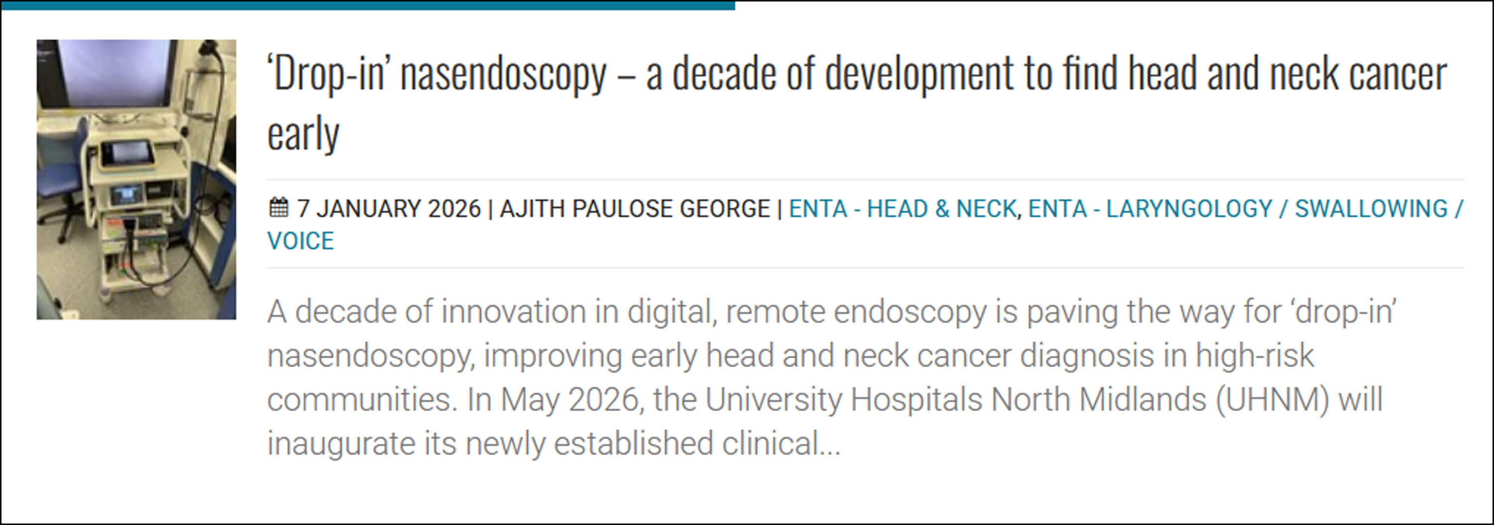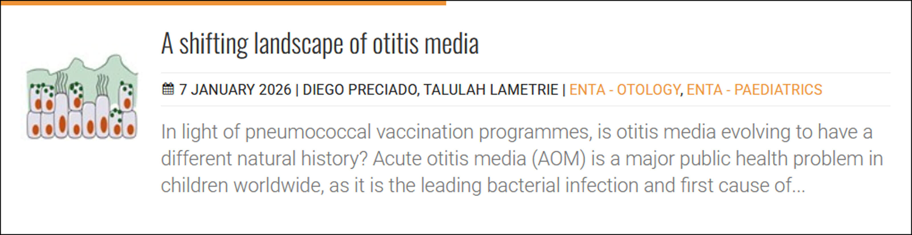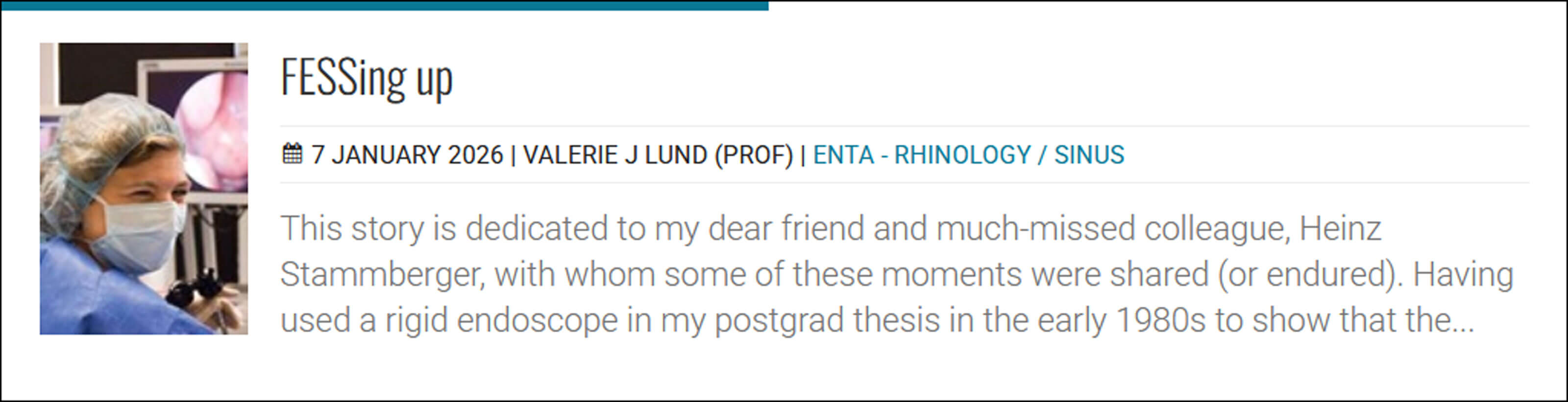 As ever, this Jan/Feb 2026 features a host of fantastic articles from authors around the world. I was particularly struck by Prof Carl Philpott’s recent MACRO Trial, which has just been published in The Lancet – many congratulations to Carl. This major trial in the UK looked at different treatment options for chronic rhinosinusitis. I have been chatting to Carl, so check out the video interview here.