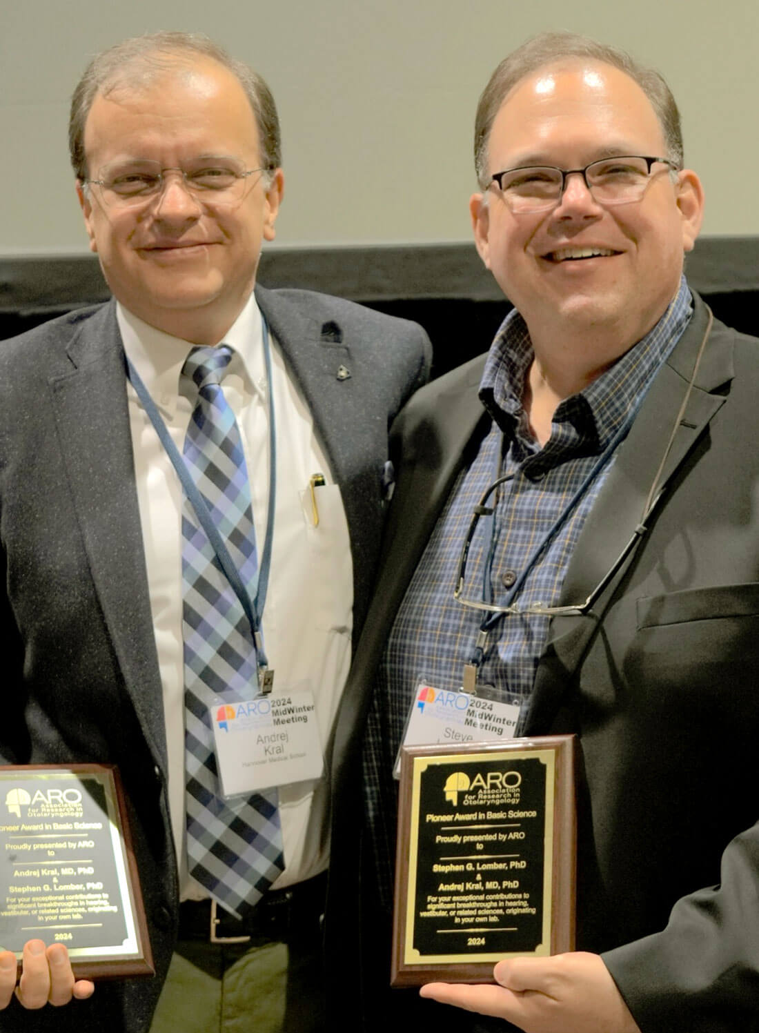 The ARO Pioneer Award in Basic Science for 2024 has been given to Dr Andrej Kral and Dr Stephen G Lomber in recognition of their fundamental work on understanding brain plasticity after hearing loss.